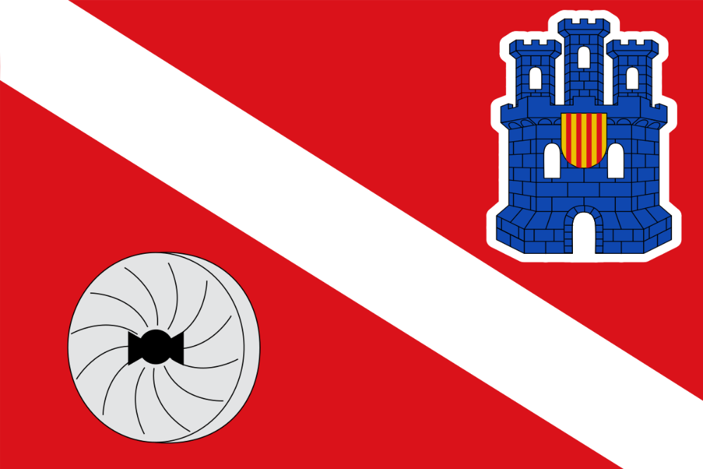 La bandera contiene en su totalidad el color rojo y una franja de color blanco que la divide contiene todos los elementos de su escudo excepto la corona.